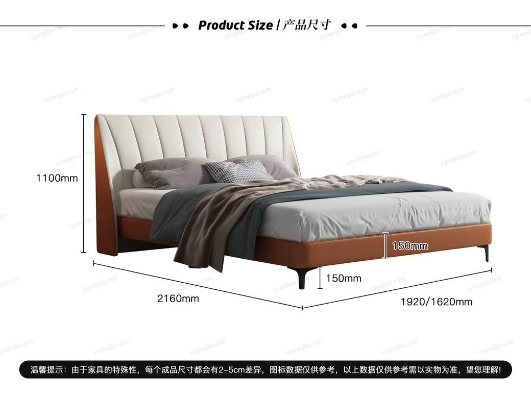 | 适配床垫 : | 长2000*宽1800*高220mm |