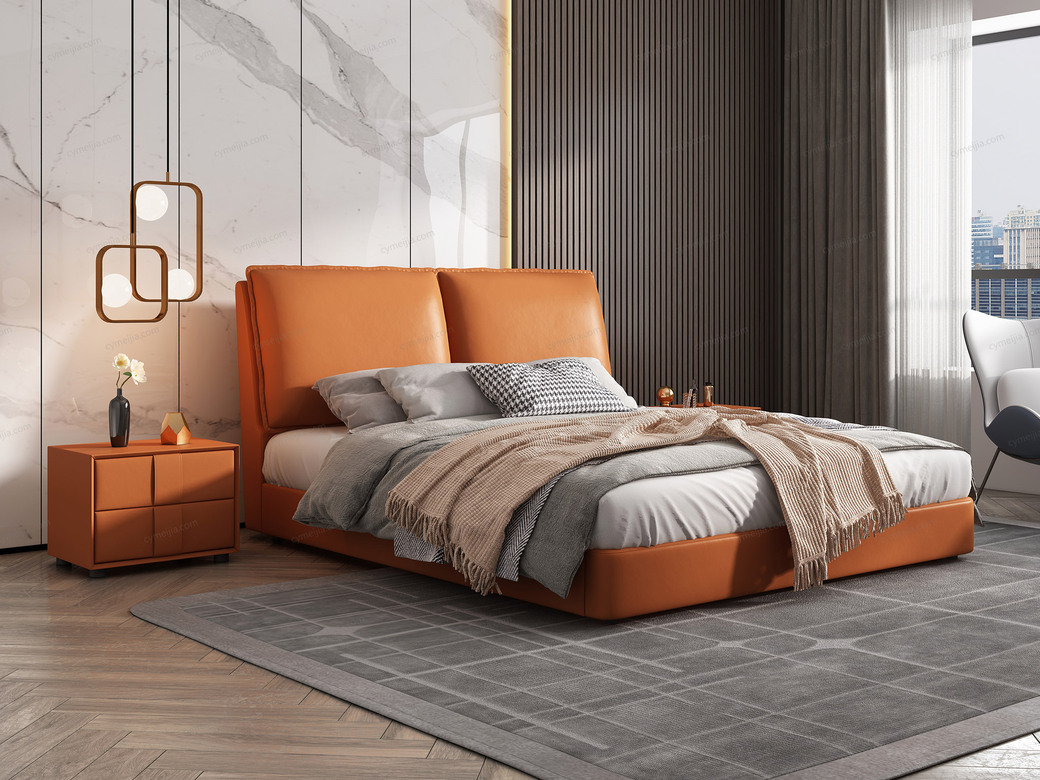 | 产地 : 佛山 | 颜色 : 爱马仕橙色 | 产品材质 : 仿真皮+实木夹板+松木方+海绵靠包+10公分松木排骨架 | 更多参数>> |