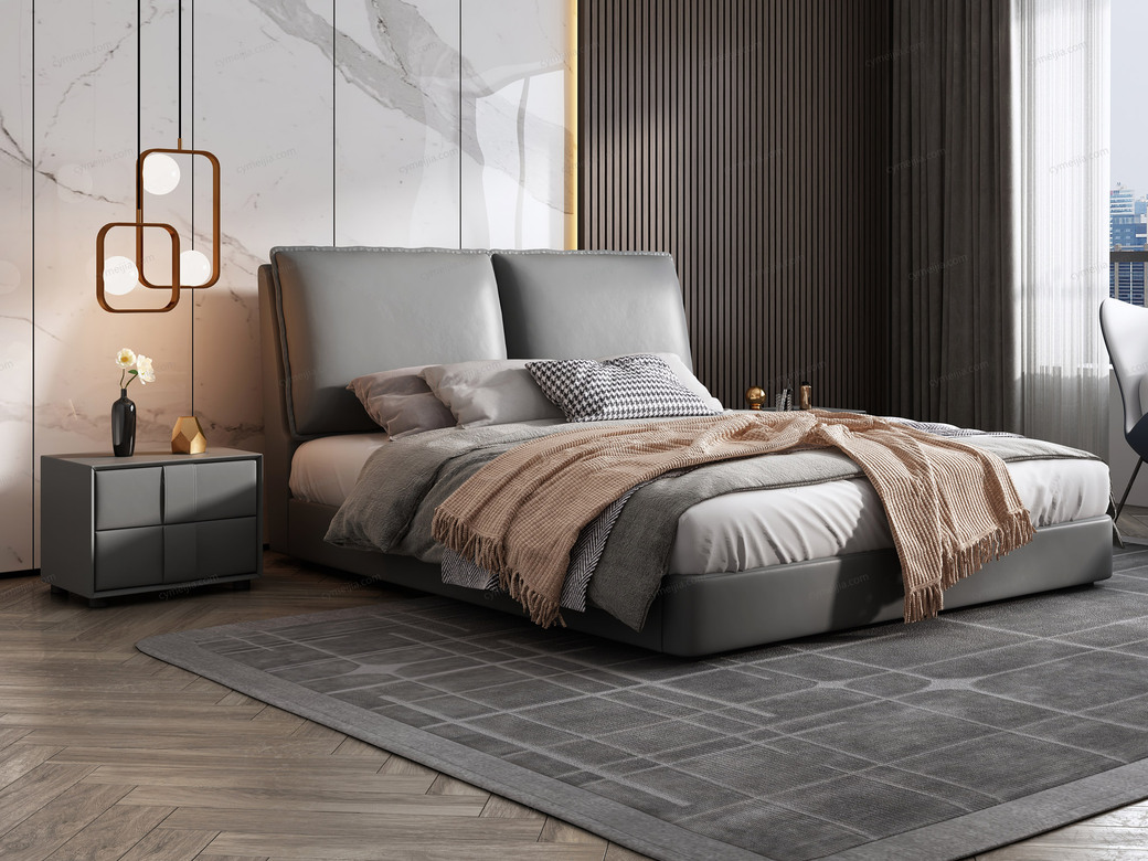 | 产地 : 佛山 | 颜色 : 中灰色 | 产品材质 : 仿真皮+实木夹板+松木方+海绵靠包+10公分松木排骨架 | 更多参数>> |