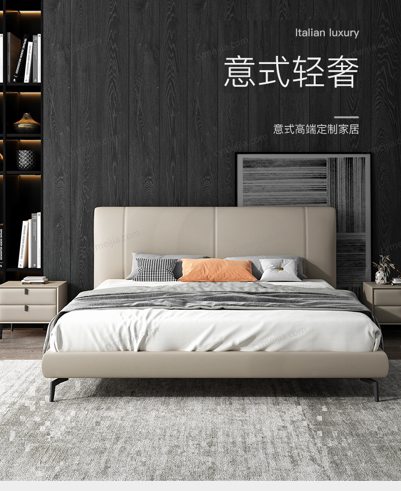 | 产品材质 : | 仿真皮+高密度海棉+俄罗斯落叶松实木框架+碳素钢脚+10公分松木排骨架 |