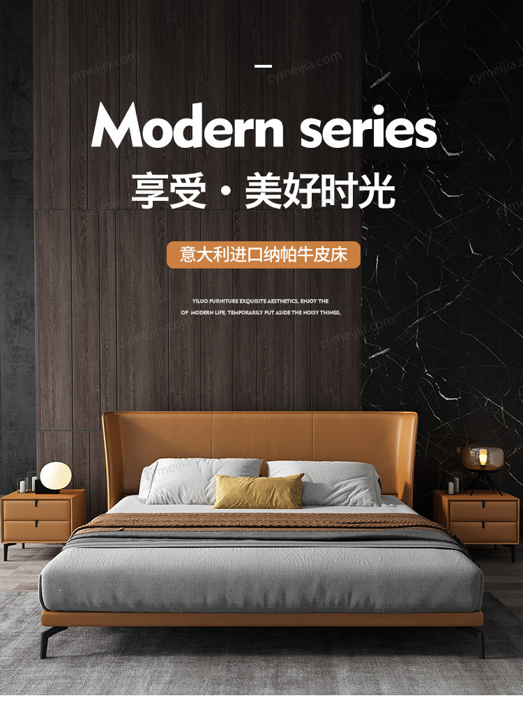 | 产品材质 : | 接触面进口头层黄牛皮+高密度海棉+俄罗斯落叶松实木框架+碳素钢脚+10公分松木排骨架 |