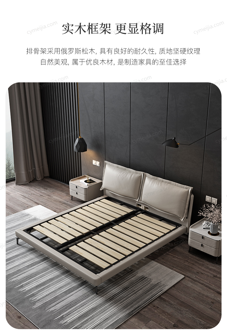 | 适配床垫 : 长2000*宽1800*高220mm | 包件数 : 3 | 床结构 : 排骨架 | |