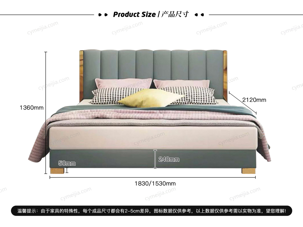 | 适配床垫 : | 长2000*宽1800*高(220-250)mm |