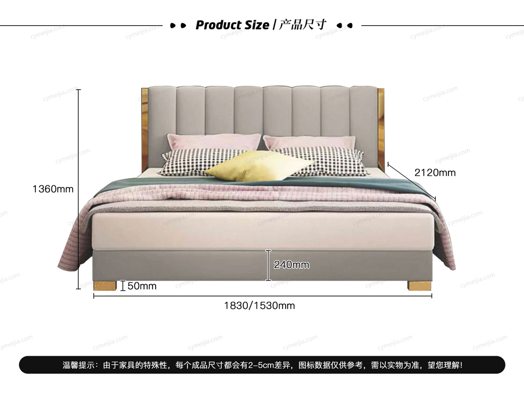 | 品牌 : 梵克美家 | 型号 : FKMJ-9973-GXC-QHS-FZP-1.5-C-BRT | 适配床垫 : 长2000*宽1500*高(220-250)mm | |