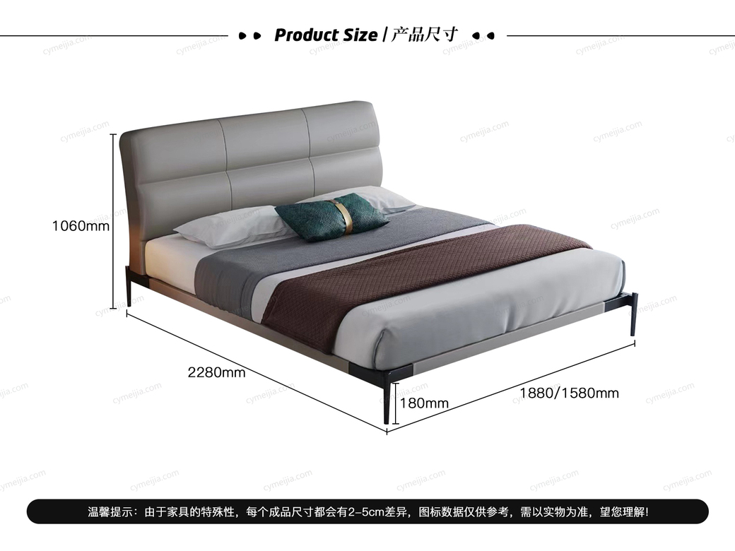 | 适配床垫 : | 长2000*宽1500*高220-250mm |