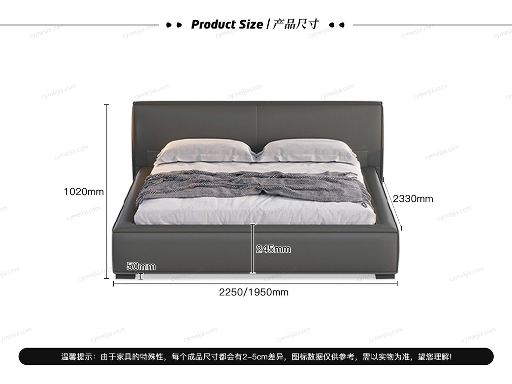 | 适配床垫 : | 长2000*宽1800*高220-250mm |