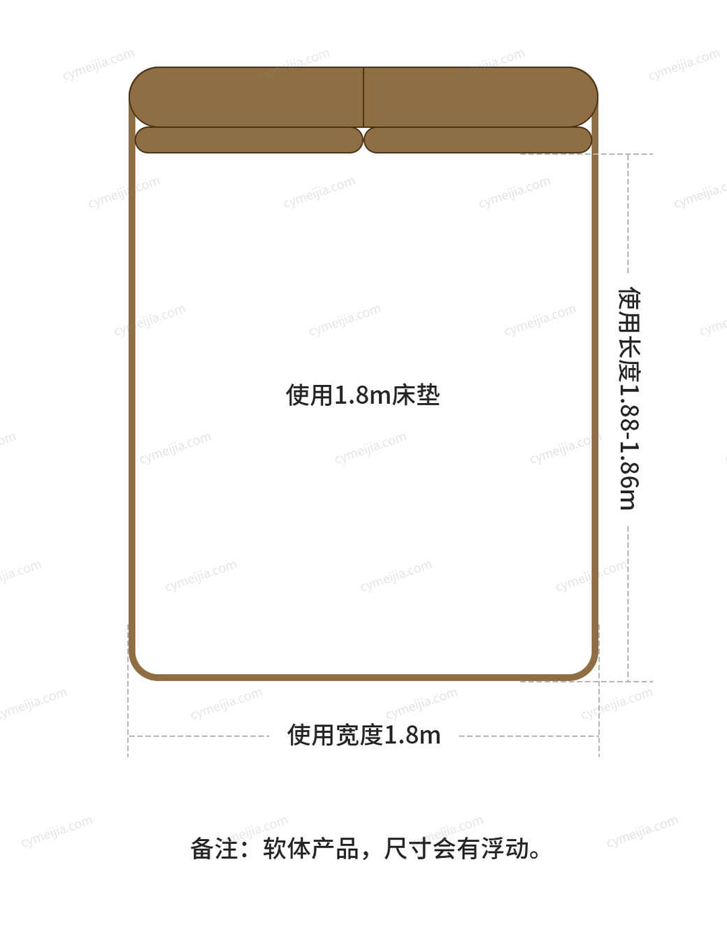 | 适配床垫 : | 长2000*宽1800*高220-250mm |