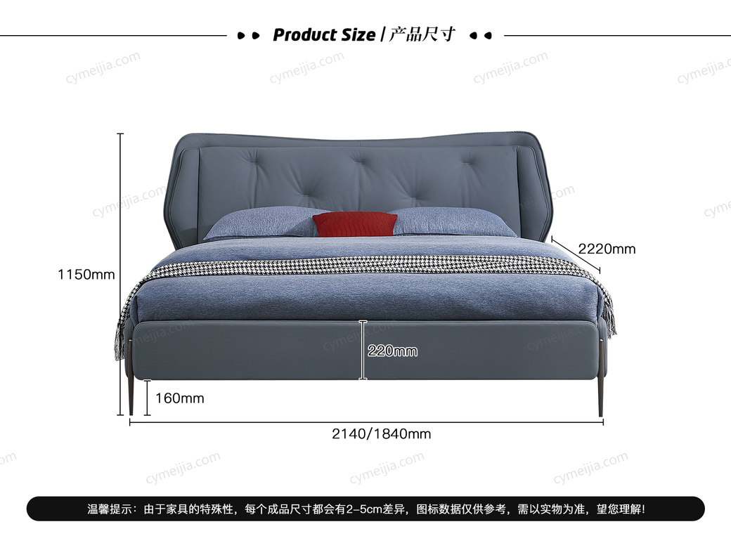 | 适配床垫 : | 长2000*宽1500*高220-250mm |