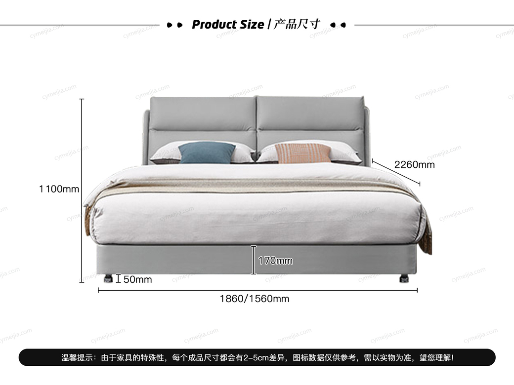 | 适配床垫 : | 长2000*宽1500*高220-250mm |