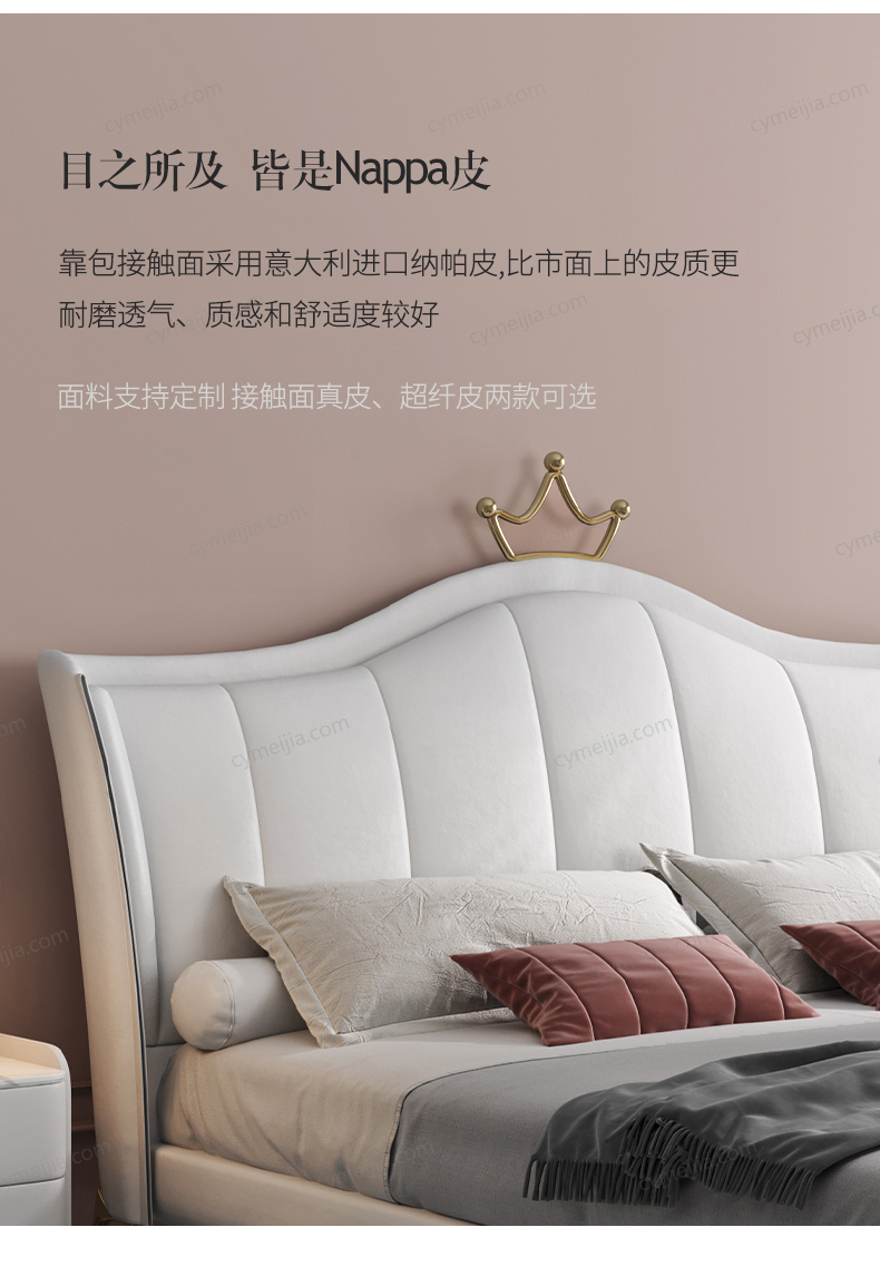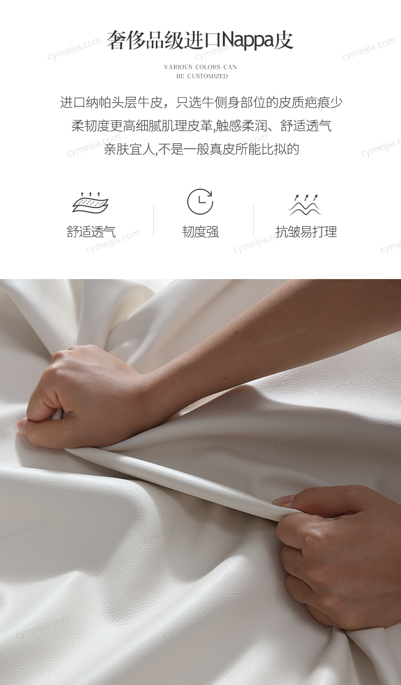 | 产品材质 : | 靠包接触面进口头层黄牛皮+高密度海绵+实木框架+冷轧钢镀金+实木排骨架 |