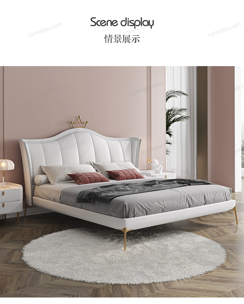 | 产品材质 : | 超纤皮+高密度海绵+实木框架+冷轧钢镀金+实木排骨架 |