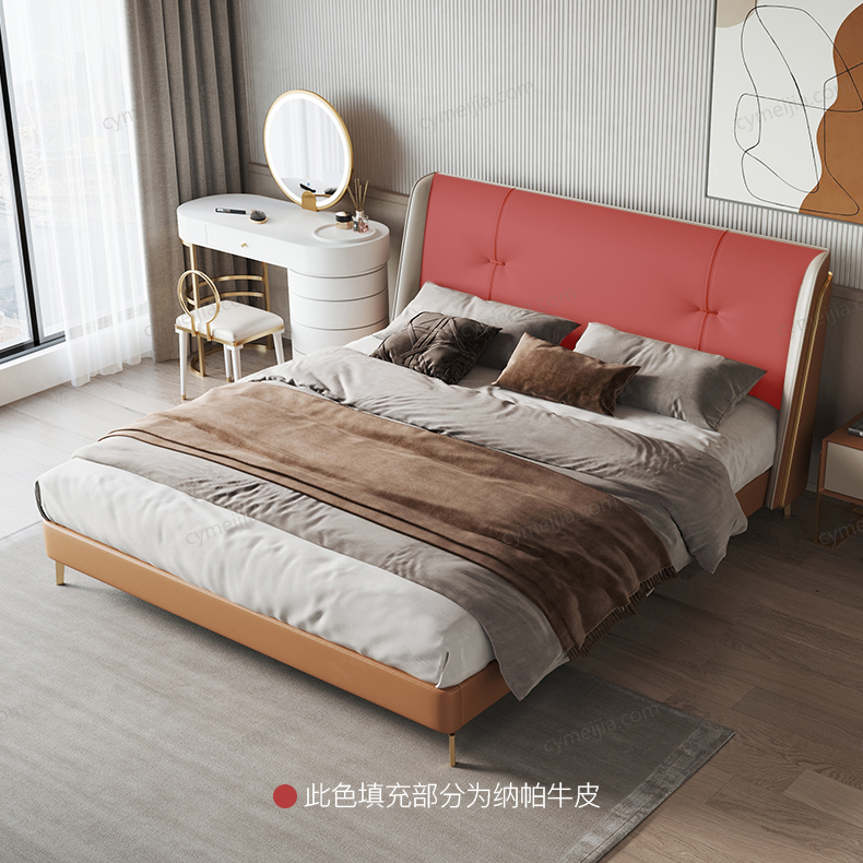 | 产品材质 : | 超纤皮+仿皮+高密度海绵+实木框架+五金镀金脚+10公分松木排骨架 |