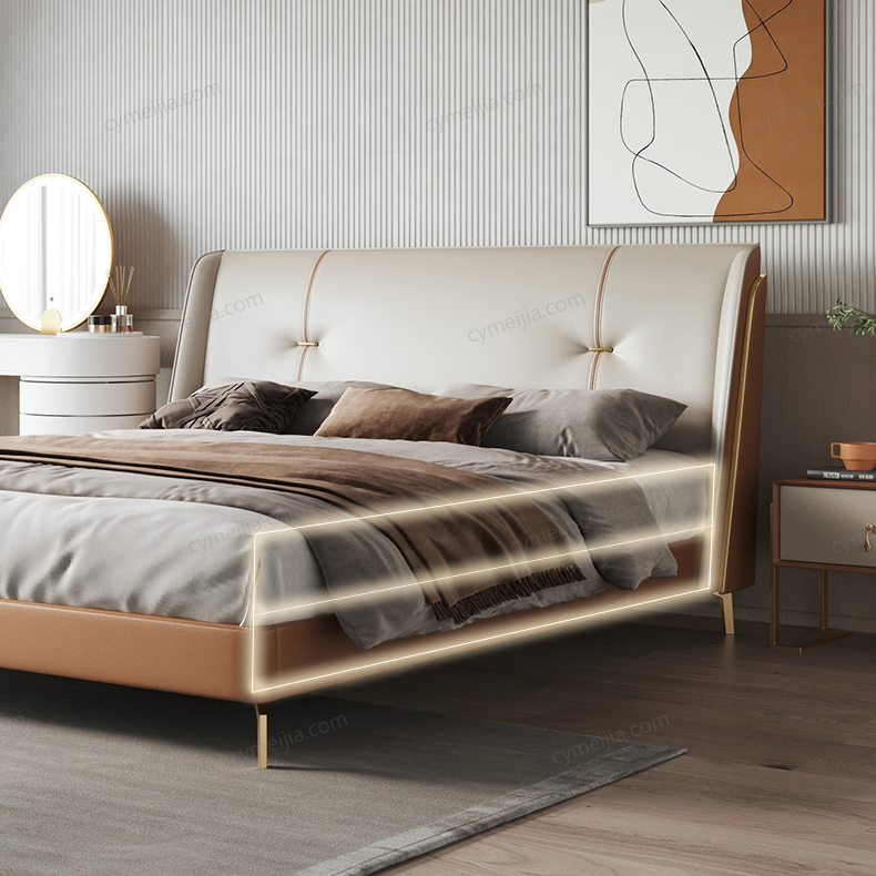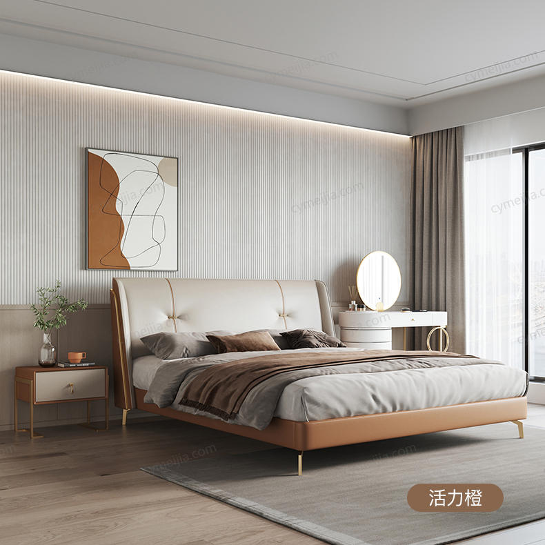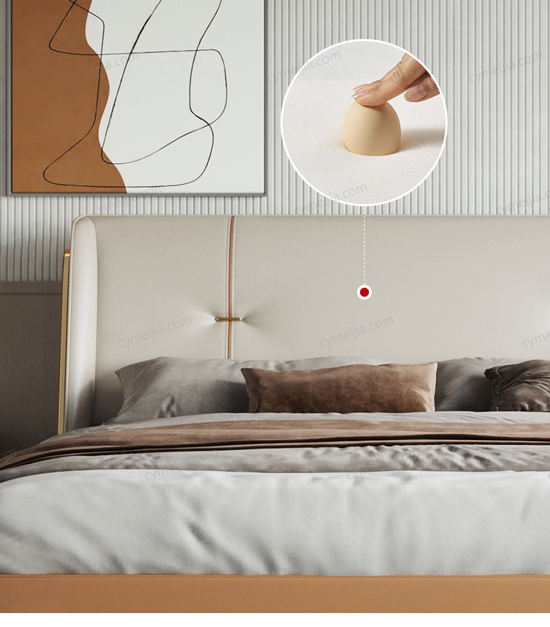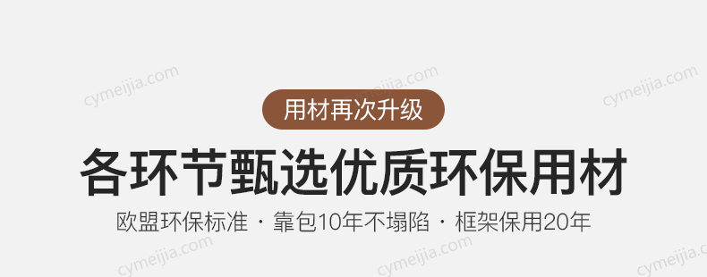 | 产品材质 : | 超纤皮+仿皮+高密度海绵+实木框架+五金镀金脚+10公分松木排骨架 |