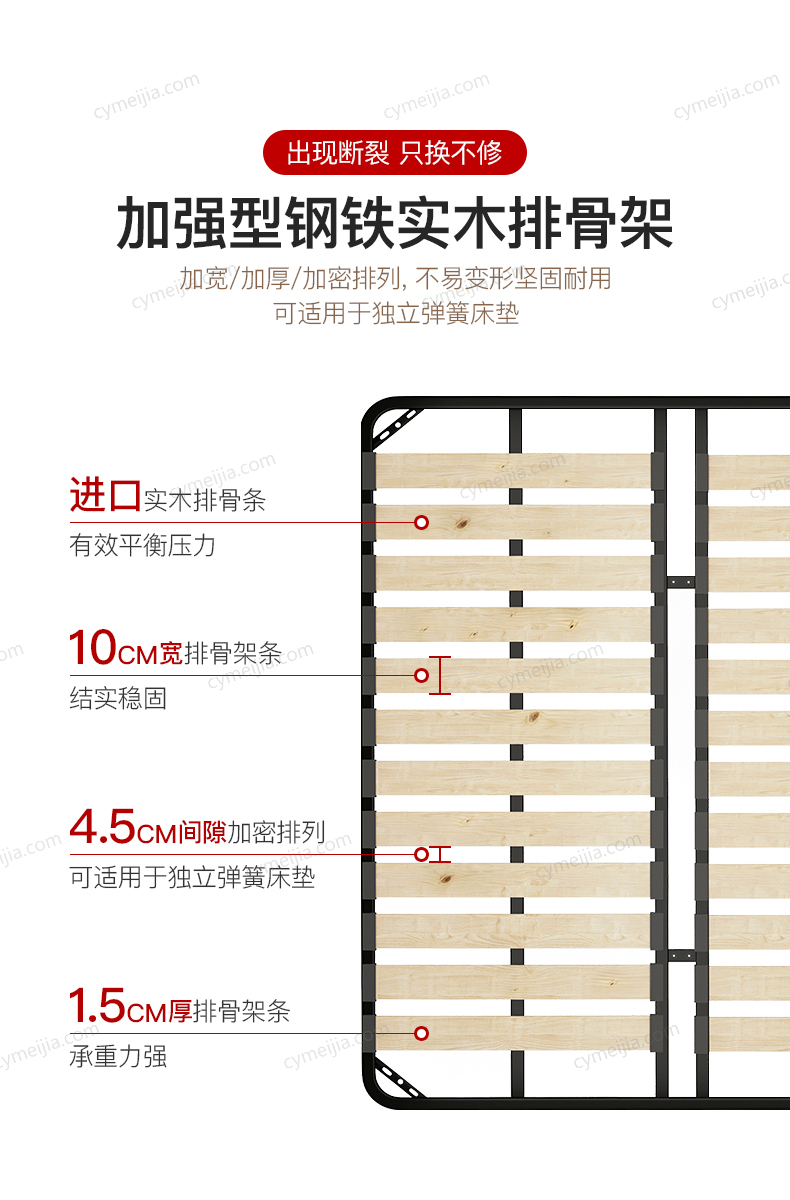 | 适配床垫 : 长2000*宽1800*高180-250mm | 包件数 : 3 | 床结构 : 排骨架 | |