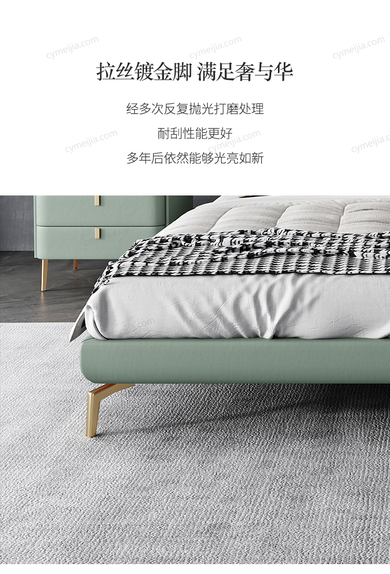 | 产品材质 : | 接触面真皮+实木框架+羽绒+拉丝镀金脚+10公分松木排骨架 |