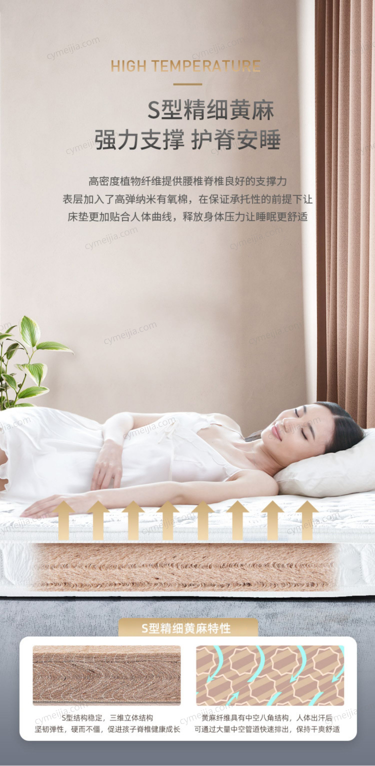 | 软硬度 : 偏硬 | 填充物 : 黄麻 | 面料 : 进口针织面料 | |