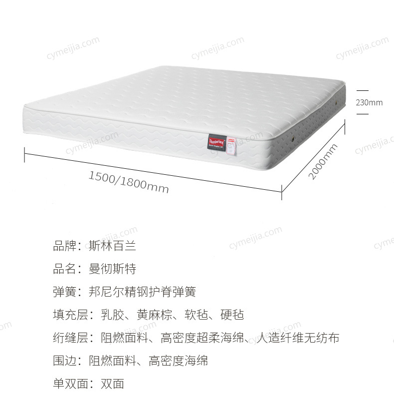 | 品牌 : Slumberland斯林百兰 | 型号 : SLBL-MCST-1800-2000-230-CD | 单双面使用 : 双面使用 | |