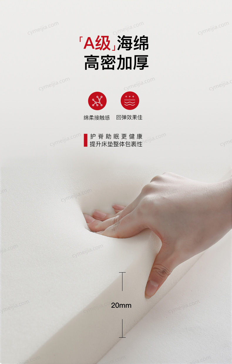 | 软硬度 : 软硬适中 | 填充物 : 乳胶+硬毡 | 面料 : 阻燃面料+人造纤维无纺布 | |