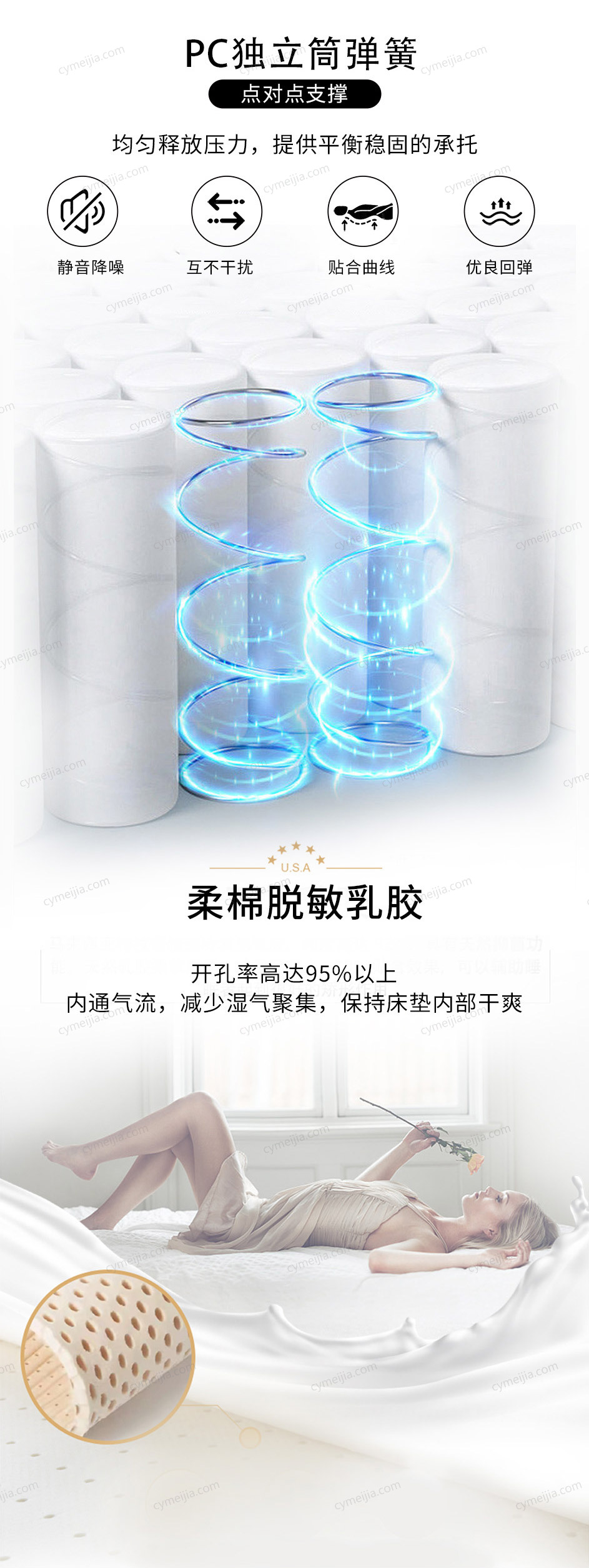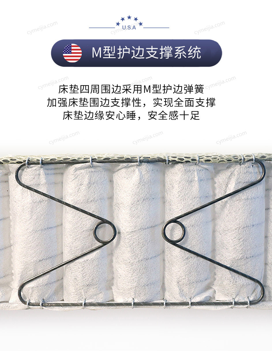 | 产品材质 : | 针织面料+柔棉脱敏乳胶+艾草树脂棉+PC独立筒弹簧+M型护边弹簧 |