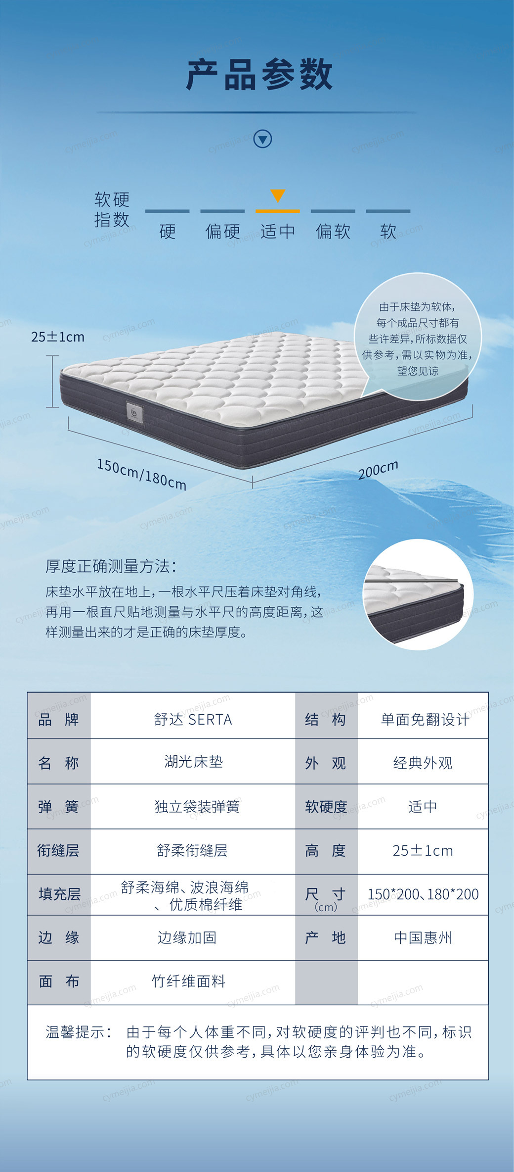 | 品牌 : Serta舒达床垫 | 型号 : SD-HG-1500-2000-250-CD | 单双面使用 : 单面使用 | |
