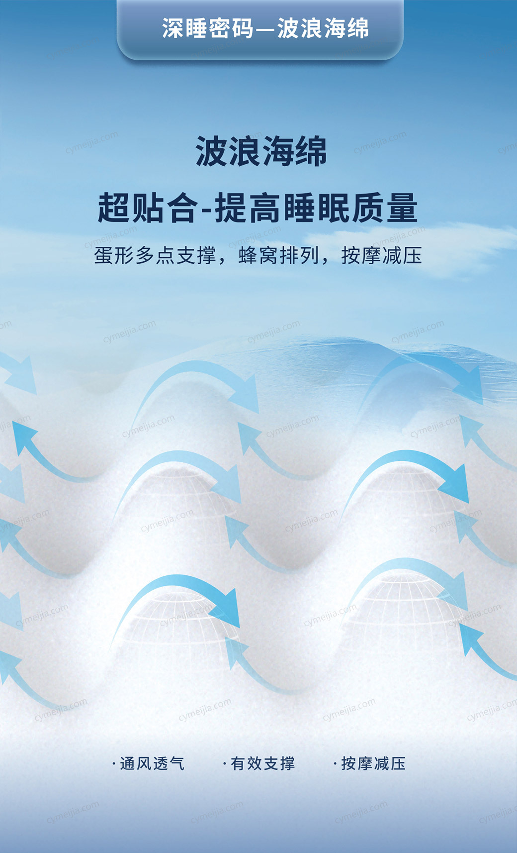 | 软硬度 : 软硬适中 | 填充物 : 波浪海绵+舒柔海绵 | 面料 : 竹纤维面料 | |