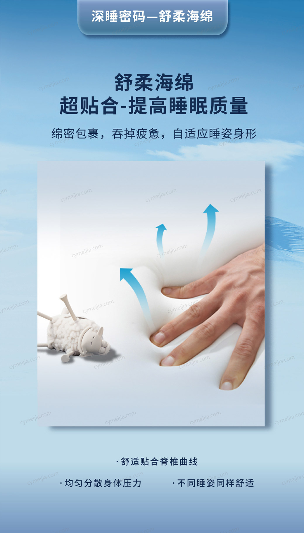 | 软硬度 : 软硬适中 | 填充物 : 波浪海绵+舒柔海绵 | 面料 : 竹纤维面料 | |