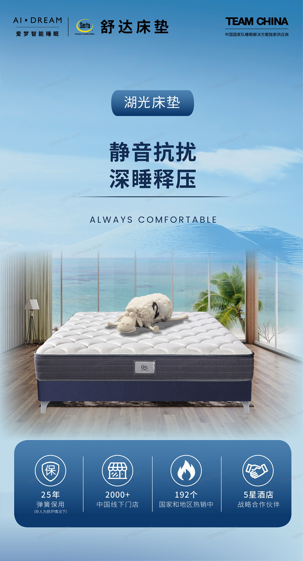 舒达(Serta)床垫,诞生于1931年,是一个全球性专业的健康睡眠品牌,畅销全球约190个国家和地区,92年来始终致力于为全球消费者提供优质健康的睡眠服务,让每个人都能“夜夜好眠”是舒达的愿景。舒达自1998年进入中国以来,坚持并一贯秉承“制造世界上最好的床垫”为使命