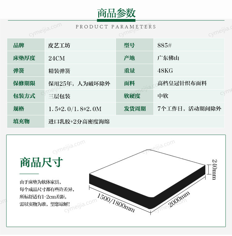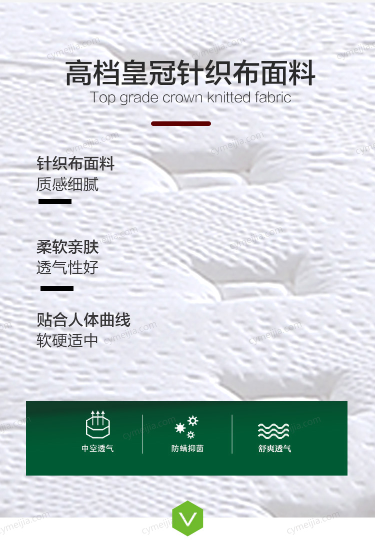 | 产品材质 : | 高档皇冠针织面料+进口天然乳胶+精钢弹簧+2分高密度海绵 |