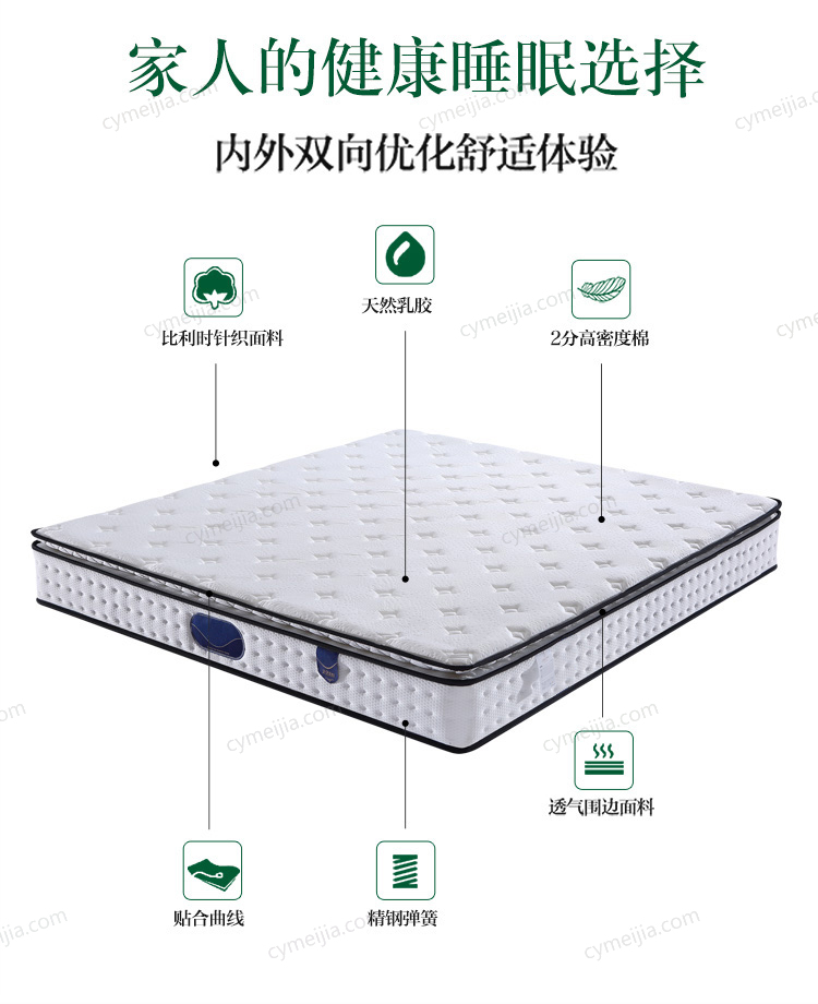 | 产品材质 : | 高档皇冠针织面料+进口天然乳胶+精钢弹簧+2分高密度海绵 |