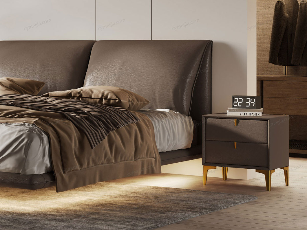 | 产品材质 : | 扪布+实木抽屉+金色五金脚 |