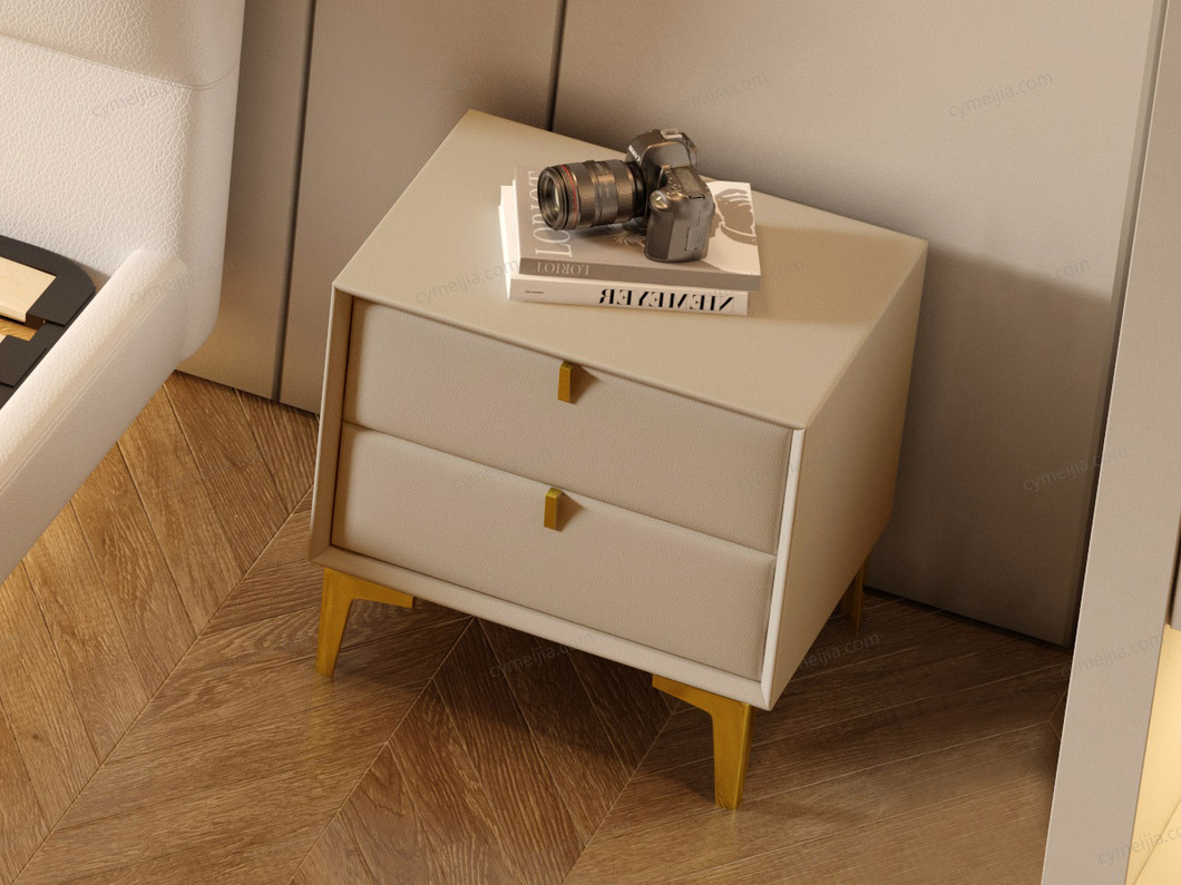 | 产品材质 : | 扪皮+实木抽屉+金色五金脚 |