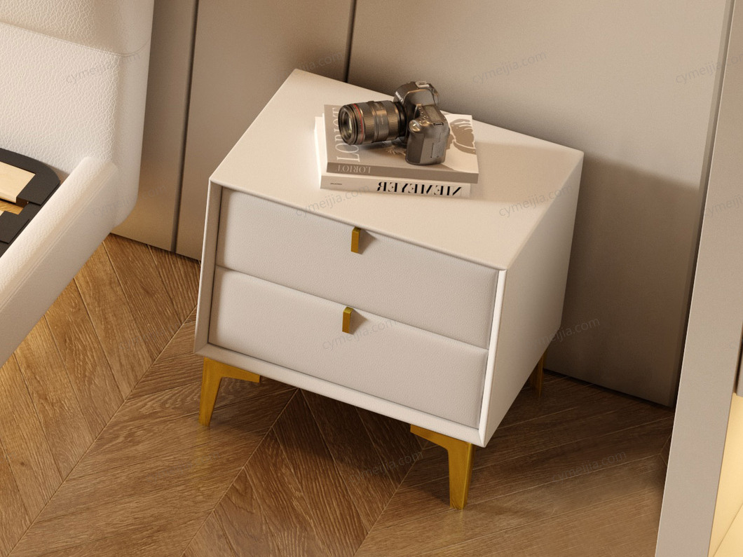 | 产品材质 : | 扪布+实木抽屉+金色五金脚 |