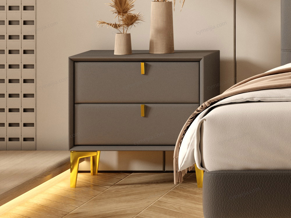 | 产品材质 : | 扪布+实木抽屉+金色五金脚 |