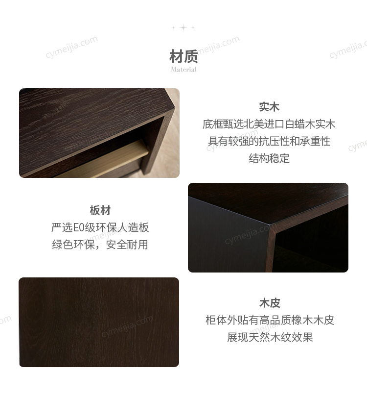 | 产品材质 : | 白蜡木+橡木皮+环保板材+金属拉手 |