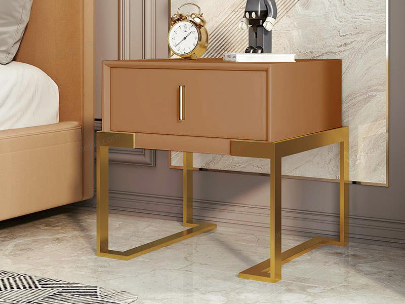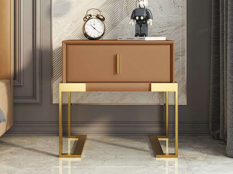 | 产品材质 : | 扪皮+实木抽屉+金色五金脚 |
