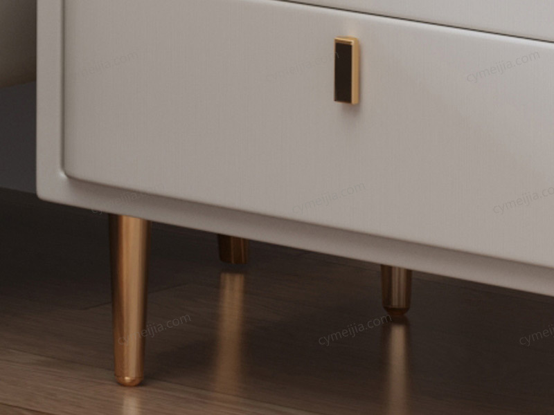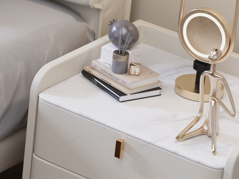| 产品材质 : | 扪皮+中纤板外框+实木抽屉+岩板台面+镀金拉手+五金脚 |