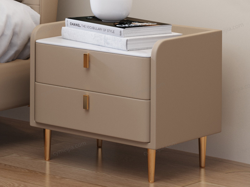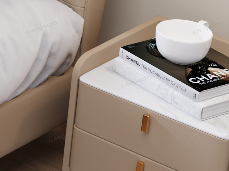 | 产品材质 : | 扪皮+中纤板外框+实木抽屉+岩板台面+镀金拉手+五金脚 |