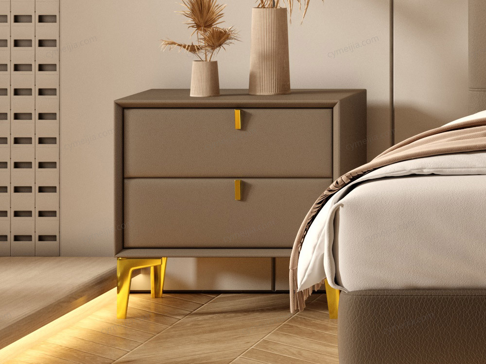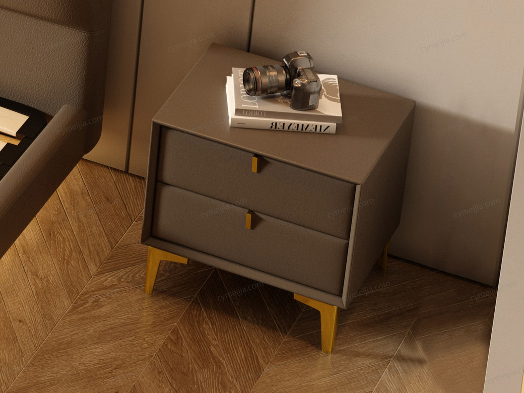| 产品材质 : | 扪皮+实木抽屉+金色五金脚 |