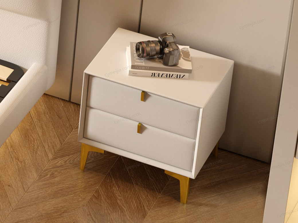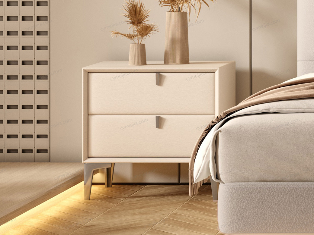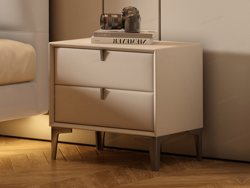 | 产品材质 : | 扪皮+松木柜体+松木抽屉+五金脚 |