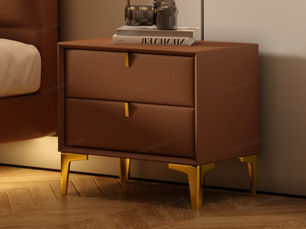 | 产品材质 : | 扪皮+实木抽屉+金色五金脚 |