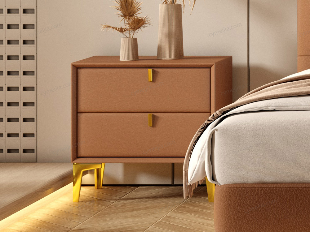 | 颜色 : 暮光橙 | 产品材质 : 扪皮+实木抽屉+金色五金脚 | 材质 : 皮艺 | 更多参数>> |