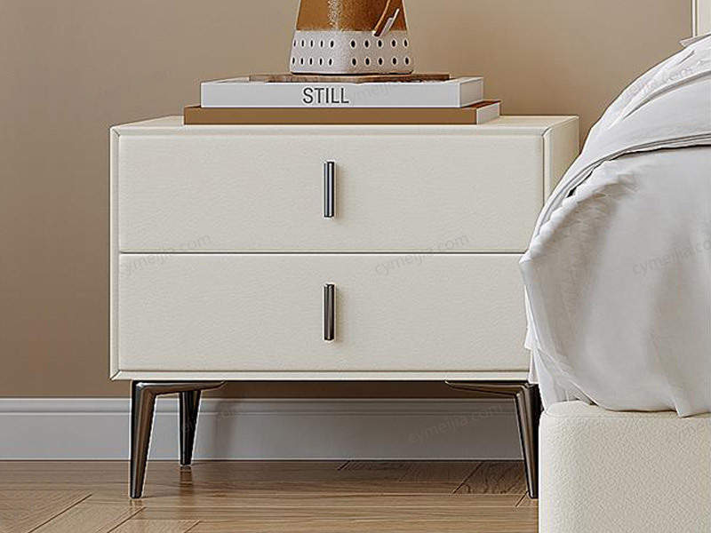 ☀ 运用优质扪皮工艺,使床头柜表面触感细腻舒适,且皮质外观具有良好的耐磨性与美观性,提升产品质感。