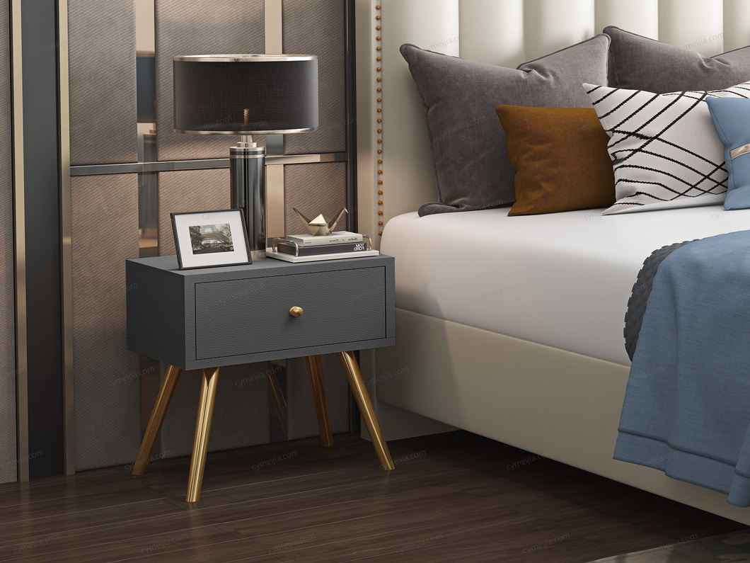 | 颜色 : 深灰色 | 产品材质 : 实木抽屉+扪皮+E1级密度板+金属脚 | 材质 : 皮艺 | 更多参数>> |