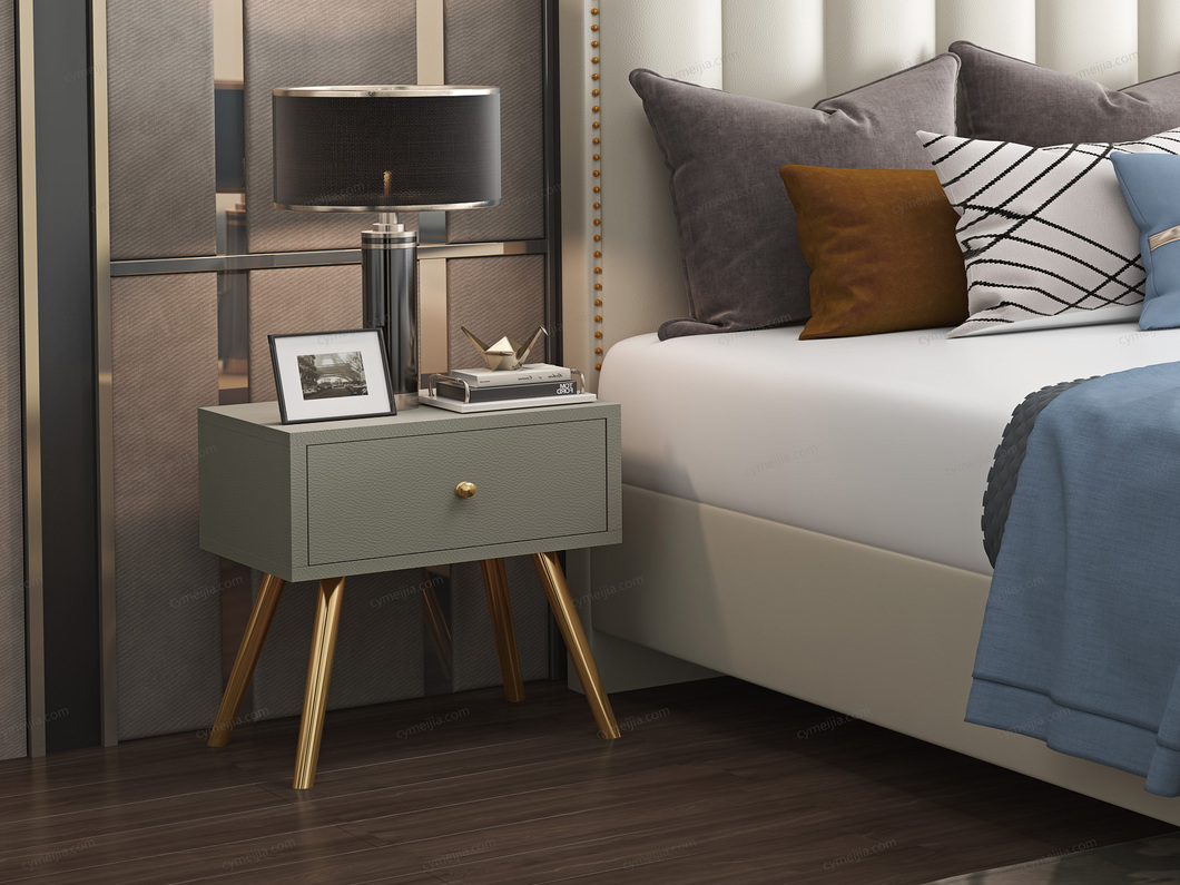 | 颜色 : 深灰色 | 产品材质 : 实木抽屉+扪皮+E1级密度板+金属脚 | 材质 : 皮艺 | 更多参数>> |