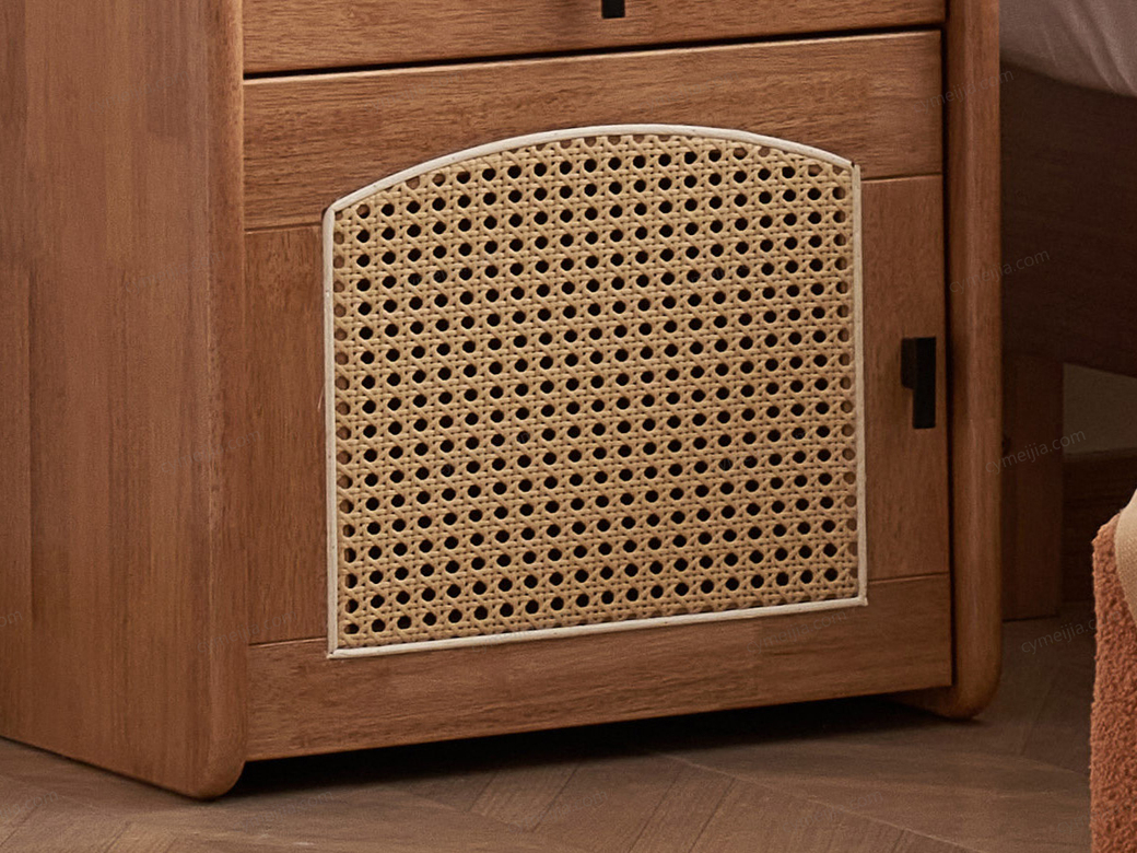 ◕ 精选天然藤材与优质木材相结合,在浅柚色的柔和色调下,统一呈现出纯净、温润的自然质感。