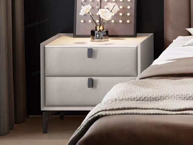 | 产品材质 : | 扪皮+全实木柜体+实木抽屉+岩板台面+碳素钢脚 |