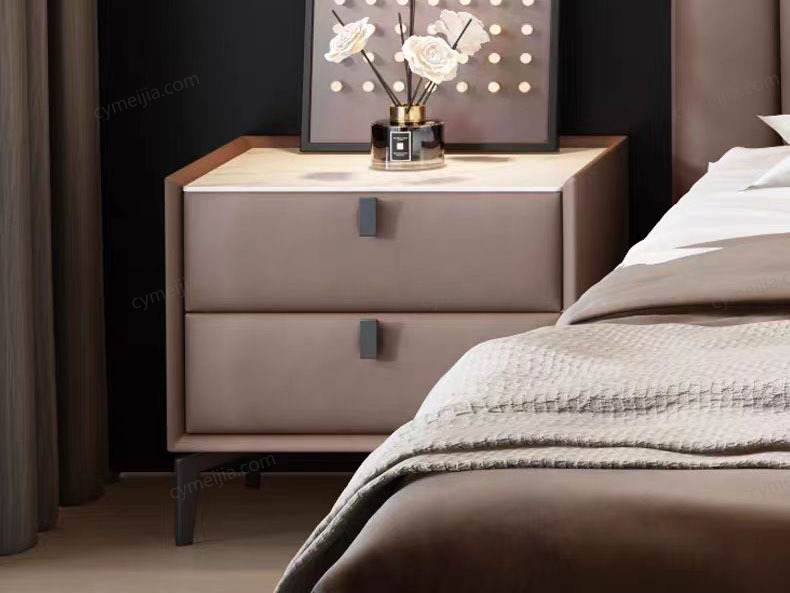 | 产品材质 : | 扪皮+全实木柜体+实木抽屉+岩板台面+碳素钢脚 |