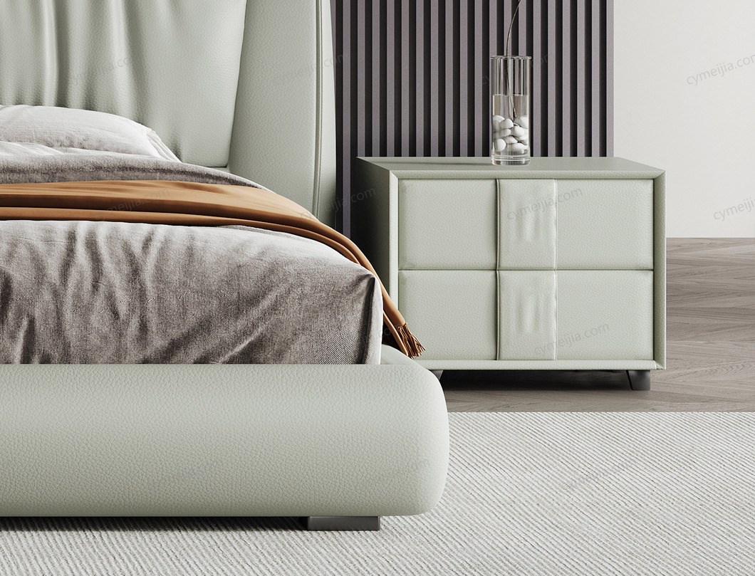 | 产品材质 : | 扪皮+全实木柜体+松木抽屉+碳素钢脚 |
