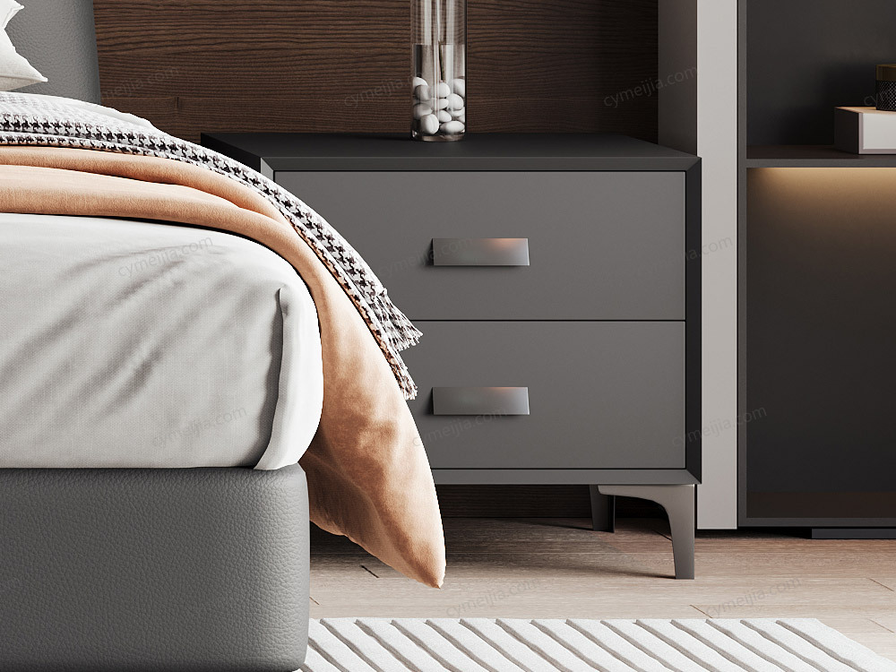 | 产品材质 : | 全实木柜体+松木抽屉+扪皮+五金脚 |