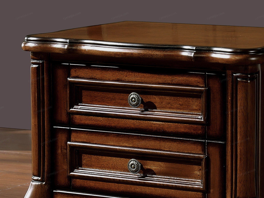 优雅的“章鱼腿”造型与经典双抽设计,完美诠释了美式风格的典雅韵味。沉稳的黑胡桃色与细腻的桃花芯木纹理相得益彰,为卧室空间注入一抹经久不衰的复古奢华与艺术气息,成为彰显品位的视觉焦点。